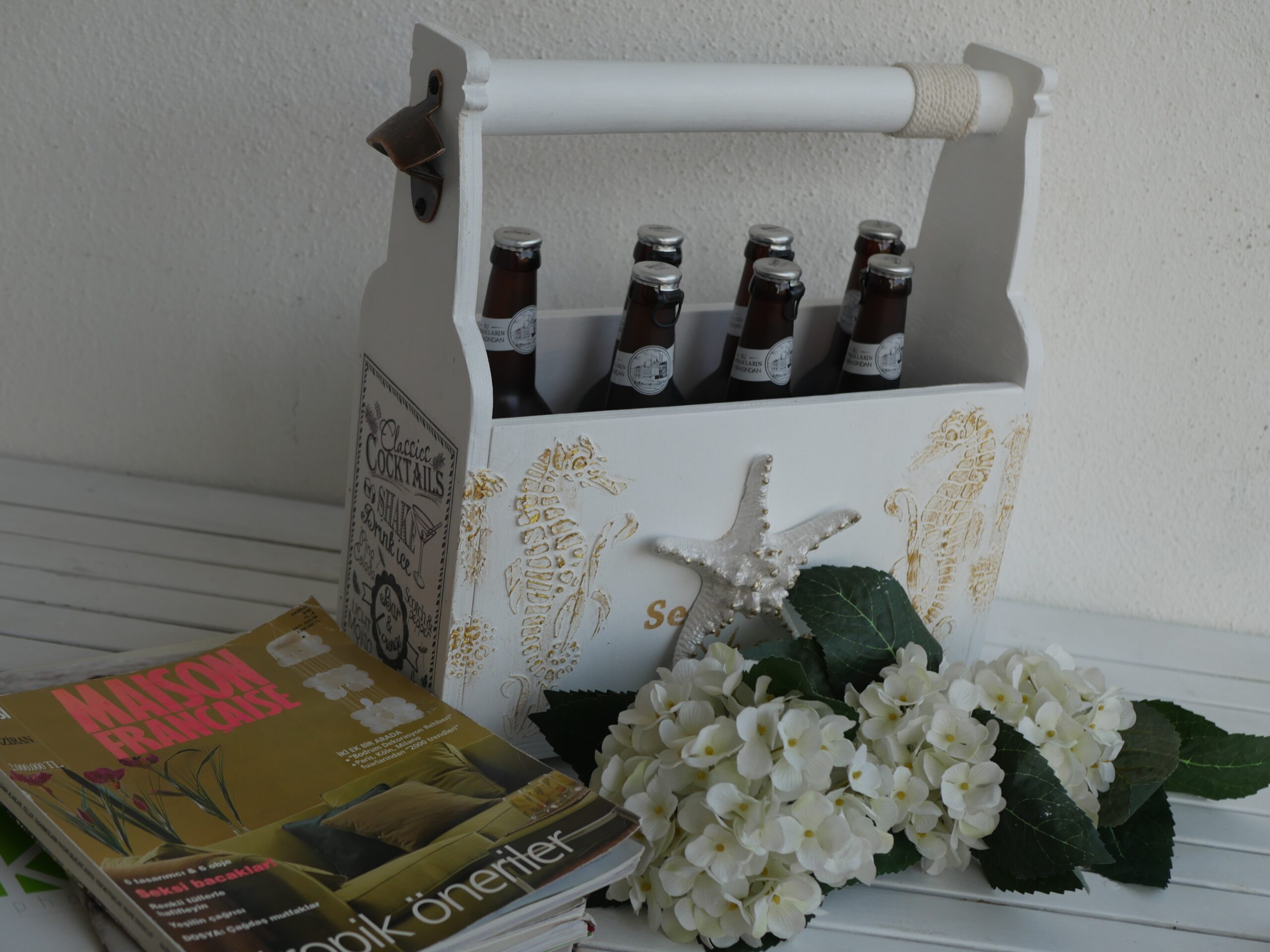- Marin konsept temalı bu çok amaçlı kutumuz ile içeceklerinizi güvenli bir şekilde taşırken işi bittiğinde gazete-dergi veya çiçeklik olarak zevkiniz doğrultusunda kullanabilirsiniz. Ürünlerimiz marin kontra ahşaptan imal edilmiş olur gönül rahatlığı ile teknelerde kullanılabilir. Ürünümüz sağlığa zararlı herhangi bir madde içermemektedir. En: 37 / Yükseklik:39 / Derinlik 16,5 cm’dir.